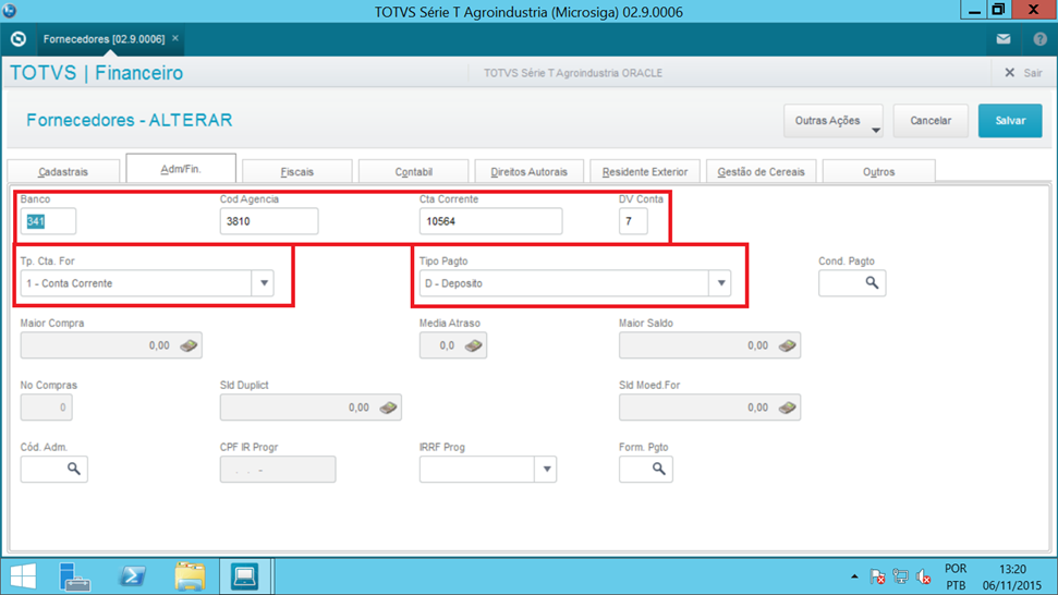 No cadastro de fornecedores, atentar para o preenchimento correto dos campos: