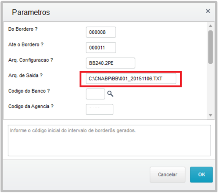 Este caminho será automaticamente sugerido na rotina de geração de remessa.