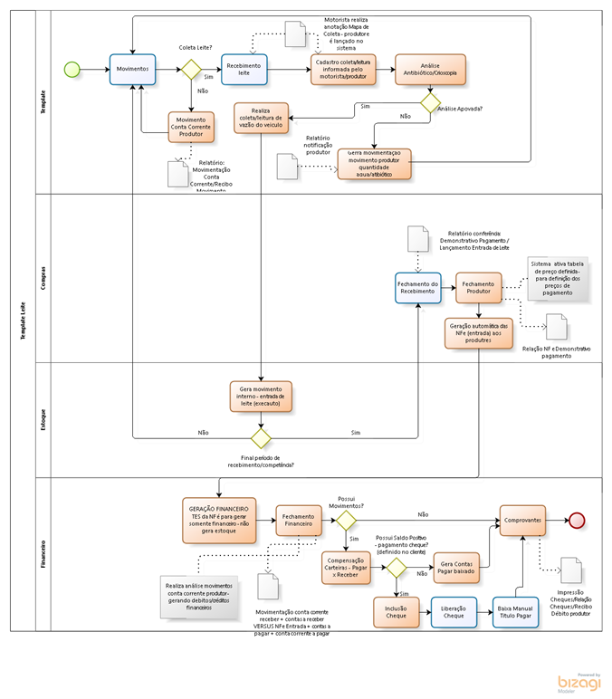 A partir do recebimento, outros sub-processos são efetuados tais como: registro motorista/produtor, análise laboratorial do leite e consequentemente, movimen- tações na conta corrente do produtor.