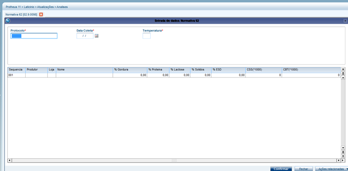 O produto já está adequado a Normativa 62 do MAPA (% Gordura, % Proteina, % Lactose, % Solidos, % ESD, % CSS, % CBT).