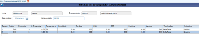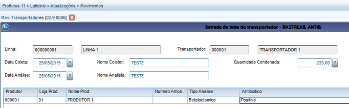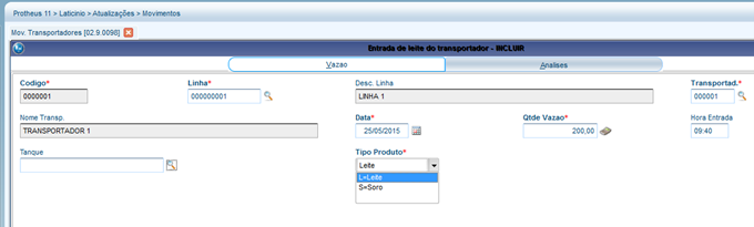 1) Quando gerado uma ENTRADA de LEITE (somente Leite), sistema gera movimento do transportador, consequentemente movimenta estoque com esta mercadoria.