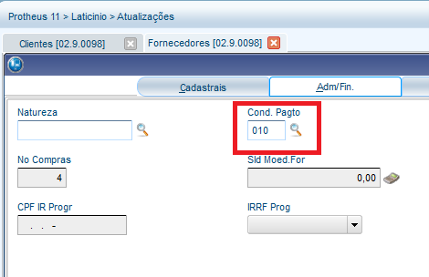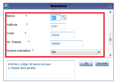 - Caso cliente utilize mais de um banco para pagamento de cheque – deve ser criado condições de pagamento para separar produtores do Banco X e produtores do Banco Y, vinculando Condição pagamento específica – desta forma os últimos dois parâmetros da rotina são de Condição de Pagamento – podendo tratar essa opção de geração de cheques.
