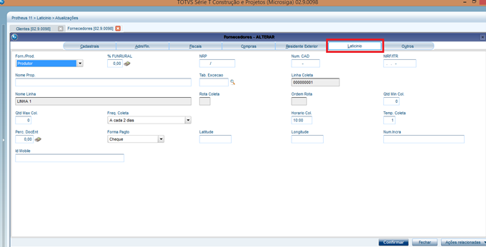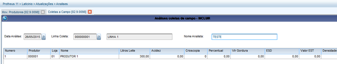 Pré-requisito: tem que ser lançada coleta de leite dos produtores antes de cadastrar Coletas a Campo.