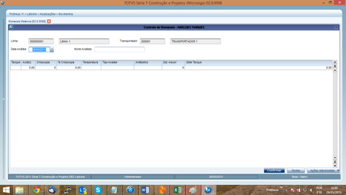 Em Atualizações -> Análises -> Fabricação Queijo.