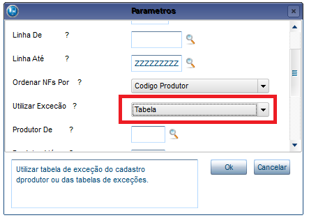 - Este parâmetro deve sempre ser definido como Tabela – será revisto essa opção para deixar fico.