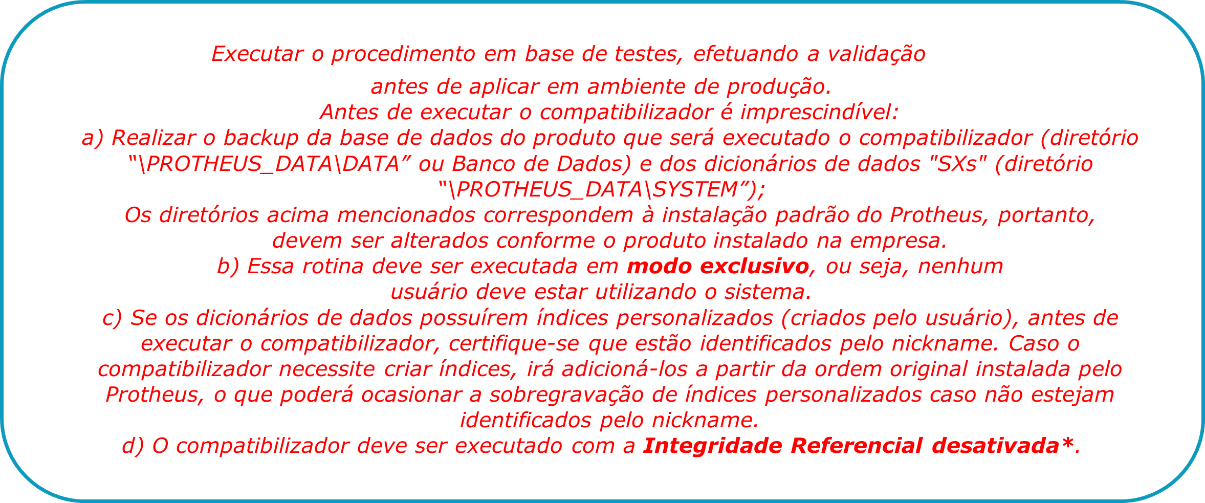 Este pacote requer as seguintes configurações no Servidor ERP Protheus: